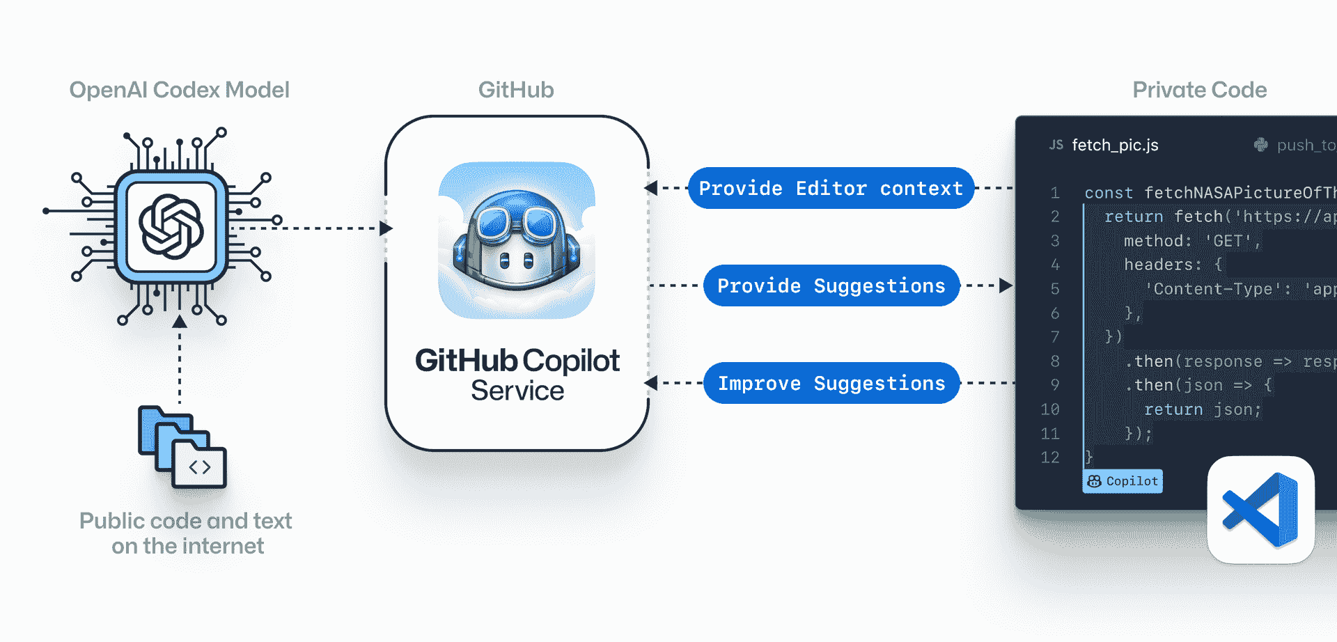 Developed in collaboration with OpenAI, powered by OpenAI Codex, GitHub is launching a technical preview of GitHub Copilot. It a new AI pair programmer that helps you write better code. GitHub Copilot draws context from the code you are working on and suggests whole lines or entire functions. It helps you quickly discover alternative ways to solve problems, write tests, and explore new APIs without having to tediously tailor a search for answers on the internet. As you type, it adapts to the way you write code to help you complete your work faster.
