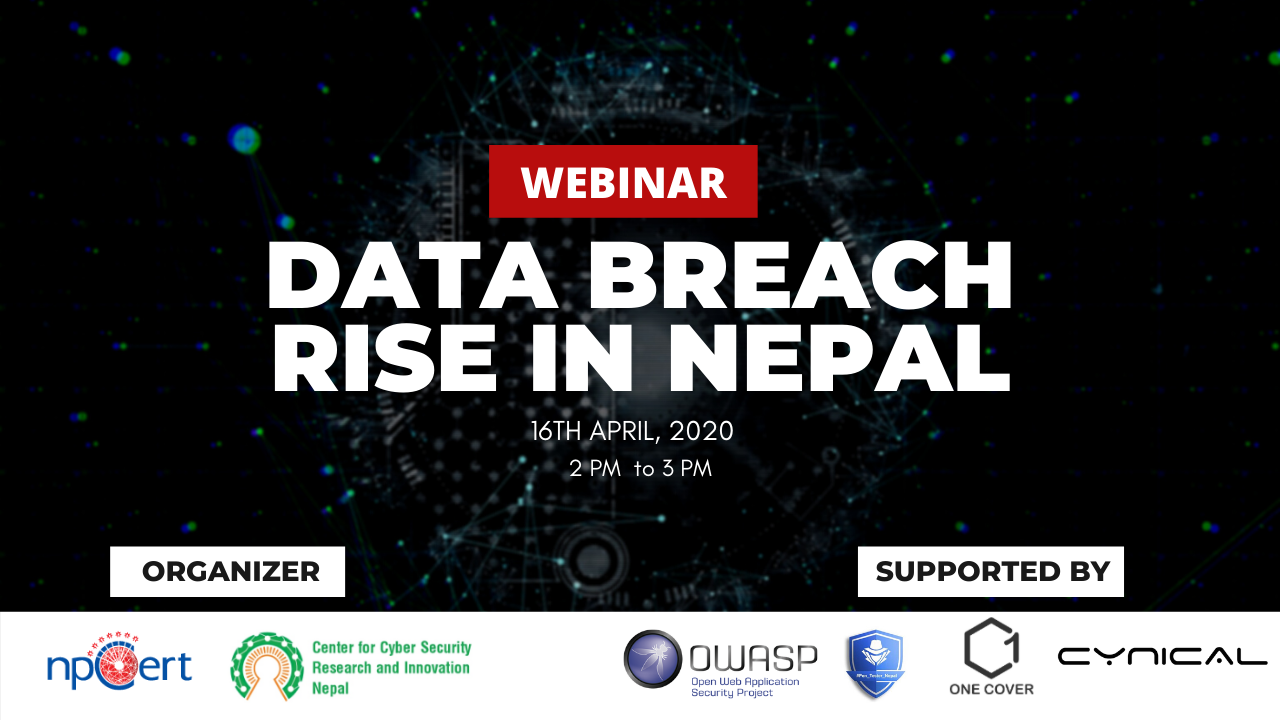 Information Security Response Team Nepal (NPCERT) and Center for Cyber Security and Research Innovation (CSRI) are organizing a webinar on ‘An Interaction on Data Breach Rise in Nepal.