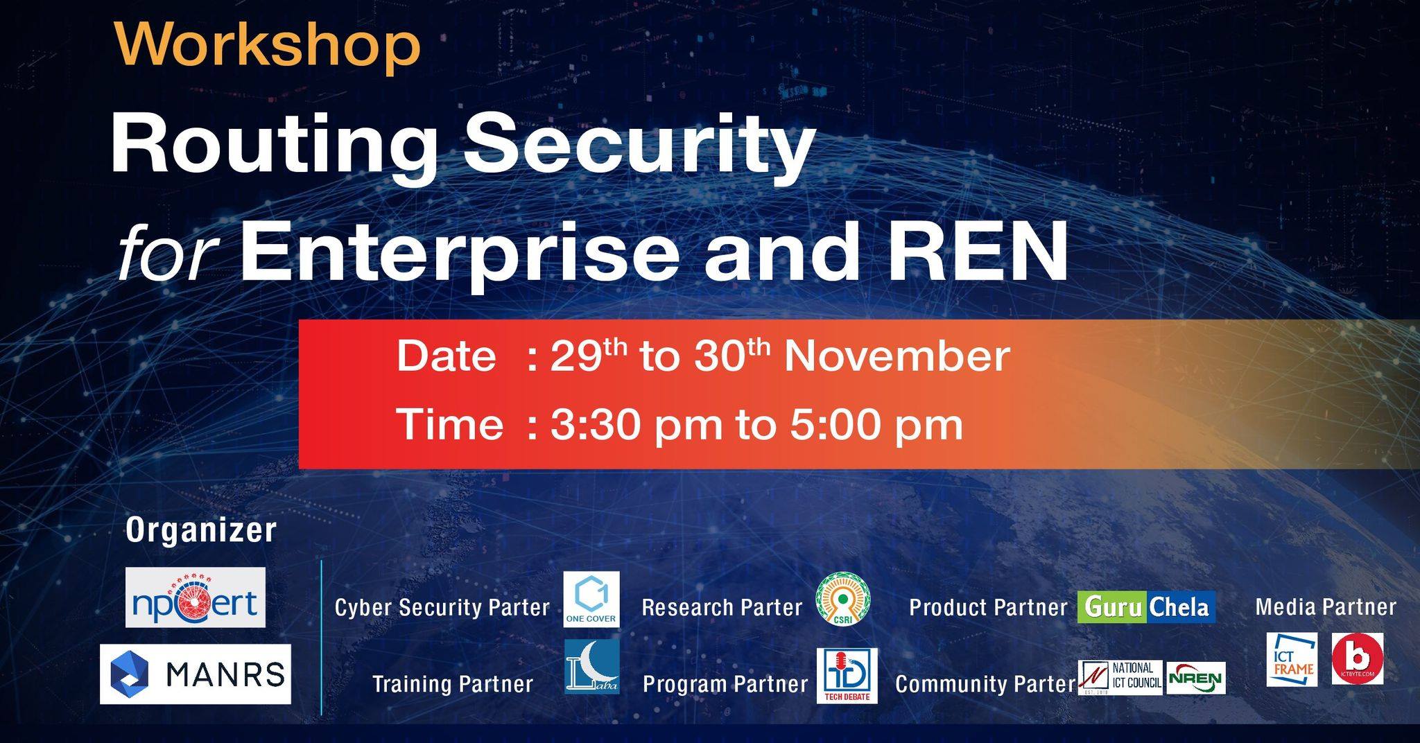 Routing Security Workshop Nepal is going to be organized by npCert (Information Security Response Team Nepal) and Internet Society Global (MANRS, Mutually Agreed Norms for Routing Security) from 29th November to 30th November.Event Date: 2020-09-15 to 2020-09-15